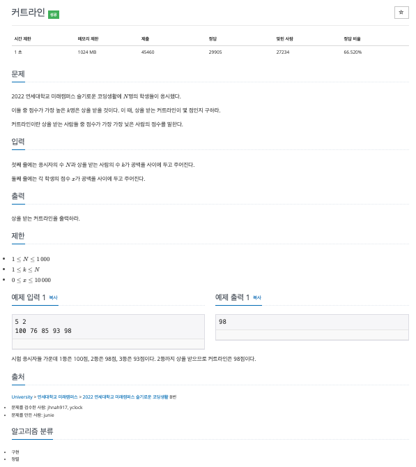 - print(num_list[k-1]) 문제에서 요구하는 위치의 점수를 출력한다.