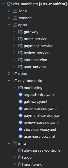 - k8s-manifests 레포지토리에서 모든 배포 상태 중앙 관리