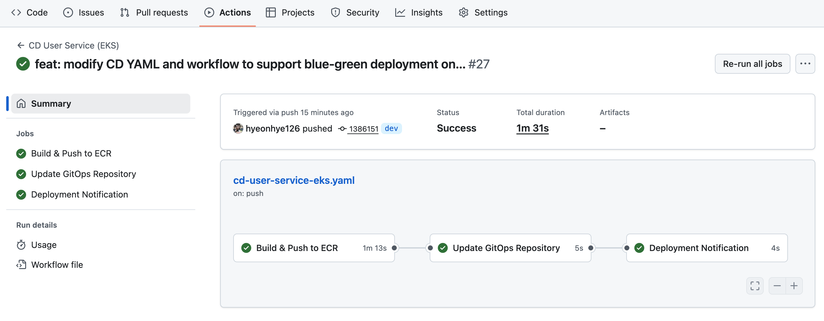 - GitHub Actions 실행: 6분 37초 → 1분 36초 (76% 단축)