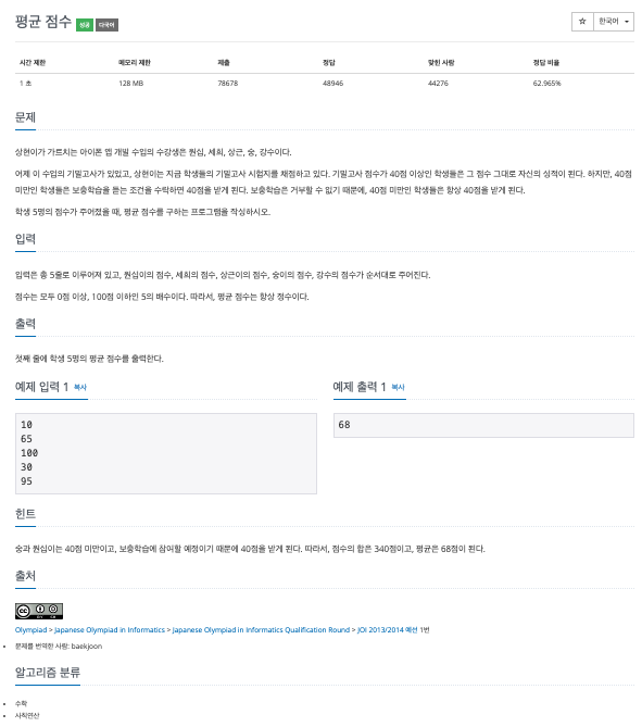 이 문제에서는 max(40, input값)으로 입력값이 40보다 작으면 40을 선택하도록 처리했다.